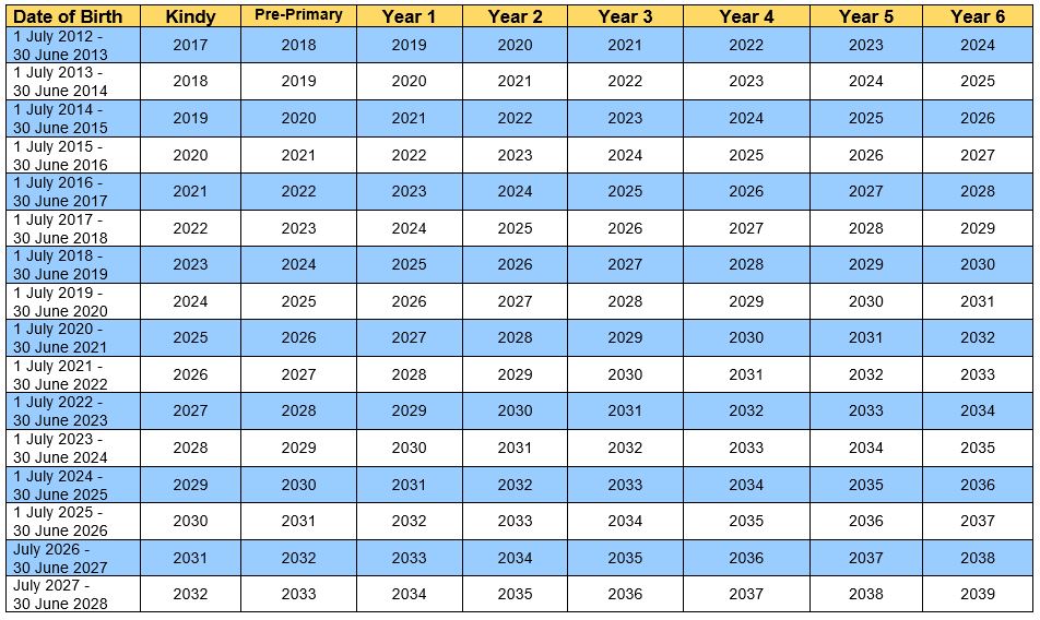- starting Pre-primary in 2026 and enrolling in their first year of compulsory schooling – 5 years old by 30 June